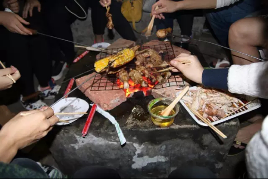 海邊玩過之后,等著大家的是海邊燒烤,又是一頓“自己動手,豐衣足食”的晚餐,與中午的家常小炒比起來,晚上的燒烤才更讓人頭痛,各種問題層出不窮連平常的大廚都無可奈何,條件有限,火太大食物會烤焦,太小又烤不熟,還好小編組有大廚掌勺,羨煞其他組的同事,于是他們便紛紛跑過來蹭食,又是一派其樂融融的景象。?