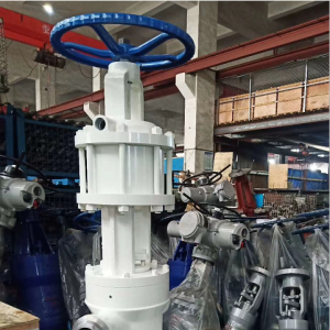 2繼續旋轉手輪,閥桿受到嵌于其上螺旋槽內的導銷的作用,使閥桿和閘板同時旋轉90度。