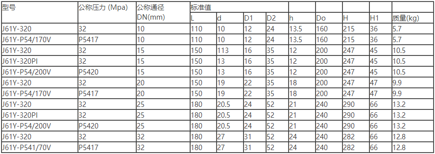 高溫高壓焊接截止閥J61Y/J961Y/J962Y/J561Y參數: