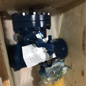 2、當介質正向流動時,氣缸下腔進氣,與重錘共同作用,合閥瓣平衡地處在全開位置。當介質反向流動時,氣缸活塞下腔迅速泄壓,閥瓣在0.5秒內快速關閉。