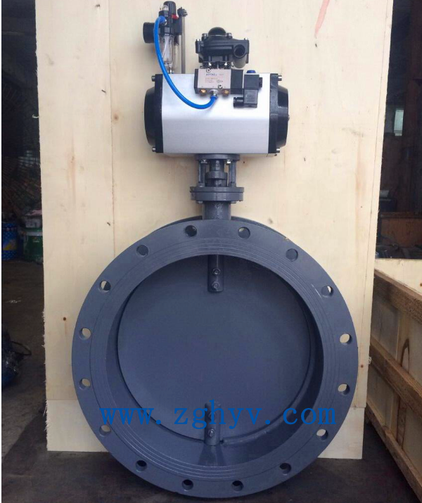 氣動通風蝶閥的氣動蝶板安裝于管道的直徑方向。在氣動通風蝶閥閥體圓柱形通道內,圓盤形蝶板繞著軸線旋轉,旋轉角度為0°-90°之間,旋轉到90°時,閥門則處于全開狀態。蝶閥有彈密封和金屬的密封兩種密封型式。彈性密封閥門,密封圈可以鑲嵌在閥體上或附在蝶板周邊。