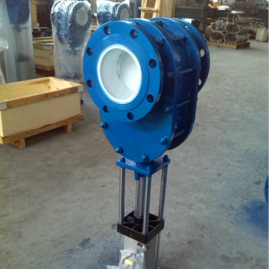 當氣源從上進氣口通入時,閥桿帶動閥板向下運動,閥門關閉。當氣源從下進氣口通入時話,閥桿帶動閥板向上運動,閥門開啟。閥板與閥座之間加載彈簧,彈簧彈力始終使閥板壓向閥座保證閥門的密封性,又容許閥板在垂直上下方向移動,這有助于補償閥門零件的熱脹冷縮,并能克服任何背壓變化對密封的影響與防止顆粒介質進入兩密封面之間。在啟閉過程中,閥板能產生自轉,使得密封面之間產生研磨、拋光作用,而且由于閥體對通道偏心,在開啟排卸物料時,會產生渦流,形成的物料旋渦會自行清掃閥門內腔。此閥門為雙閘板單密封,獨特的下閥體斜面設計,保證閥門內腔不積灰。所有的這些特點,使得這種閥門具有超長的使用壽命,為您的系統安全運行提供了可靠的保證.