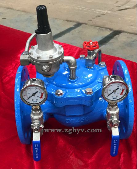 200X減壓穩壓閥由主閥、導閥、針閥、球閥、微型過濾器和壓力表組成水力控制接管系統。使用時,當調定出口壓力后,能自動保持穩定出口壓力。 本產品利用導閥自力控制,不需要其它裝置和能源,保養簡便,壓力控制準確度高,受進口壓力和流量影響小,減壓穩壓可靠。 本系列閥門產品廣泛用于高層建筑、生活區等供水管網系統及城市供水工程。