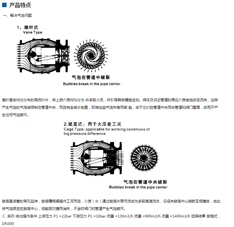 2、抗氣蝕、抗震動:充分利用流體動力學原理進行流道設計,消除汽蝕和震動現象對管網的損傷,大大提高閥門和管道的使用壽命。