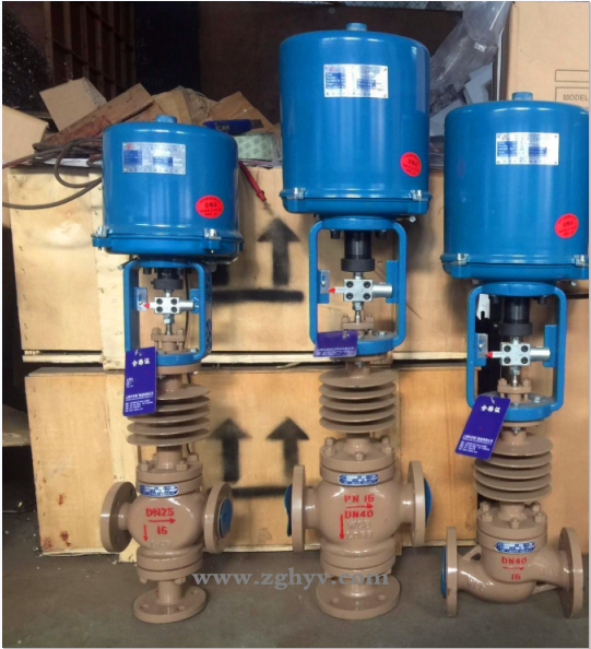 本公司的電動三通調節閥,是由PSL系列和3810系列直行程電動執行機構和三通調節閥體組成。(也可配其它品牌直行程執行機構)。電動執行機構為電子式一體化結構,內有伺服放大器,輸入控制信號(4-20mADC或1-5VDC)及電源即可控制閥門開度,達到對壓力、流量、液位、溫度等工參數的調節。電動三通調節閥具有動作靈敏、連線簡單、流量大、體積小、調節精度高等特點。控制精度和性能比DKZ型有明顯提高。電動三通調節閥具有調節精度高,動作穩定可靠等優點。電動三通合流調節閥主要用于將兩種流體混合成第三種流體;電動三通分流調節閥主要用于將一股流體分成兩股流體。電動三通調節閥產品可代替兩臺互為開關的單、雙座調節閥,用于液體、氣體、蒸汽等介質的調節與控制。